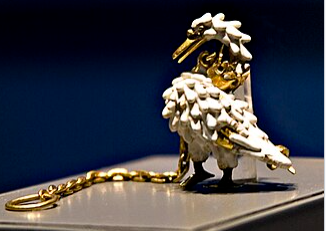 오늘 함께 알아볼 장식품은 던스터블 백조 장신구이다. 던스터블 백조 장신구는 백조 형태의 브로치로 1400년 무렵, 영국이나 프랑스에서 제작된 것으로 확인된다. 혹고니의 모양을 본 떠 만든 작품으로, 법랑과 금을 이용한 것이 특징이다. 지금은 영국의 대영박물관에 전시되어 있다. 던스터블 백조 장신구란 이름이 붙은 이유는 1965년 던스터블 수도원 자리에서 발굴되었기 때문이다. 그 때 당시, 고위 귀족 가운데 한 명이 자신의 리버리(지금의 시종)에게 하사한 것으로 추측되고 있다. 작품에서 나타난 문양은 1399년 웨일스공이었던 헨리 5세로 추측되고 있다.